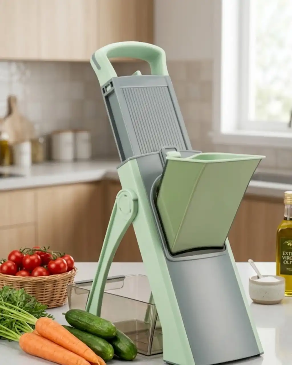 Dayanıklı çelik malzeme kullanımı sayesinde uzun ömürlü ve sağlam bir yapı sunan el rendesi, mutfakta güvenli ve pratik kullanım arayanlar için ideal bir çözümdür. Yüksek kaliteli paslanmaz çelikten üretilmiş olan doğrama bıçakları, sebze ve meyveleri rahatlıkla dilimlemenize ve doğramanıza olanak tanır. Keskin bıçak yapısı sayesinde minimum eforla maksimum verim elde edilir.Üst kısmında yer alan özel aparat, sadece birkaç hamleyle malzemelerinizi istediğiniz kalınlıkta doğramanızı sağlar. Bu sistem, hem hız kazandırır hem de mutfakta geçirilen zamanı önemli ölçüde azaltır. Eşsiz tasarımı sayesinde elleriniz bıçaklara yaklaşmaz ve bu da ürünü günlük kullanım için son derece güvenli hale getirir.Kompakt ve katlanabilir yapısı, kullanım sonrası kolay saklama imkânı sunar. Dolap içinde veya çekmecede minimum yer kaplar. Ürünle birlikte gelen temizlik fırçası, bıçaklar arasında biriken gıda artıklarının kolayca temizlenmesini sağlar. Ayrıca entegre yiyecek toplama haznesi, doğrama sırasında tezgâhın temiz kalmasına yardımcı olur.Kolay temizlenebilir yüzeyi ve şık, modern tasarımı ile mutfak dekorasyonuna estetik bir dokunuş katar. Hem fonksiyonel hem de görsel olarak beklentileri karşılayan bu el rendesi, mutfağın vazgeçilmez yardımcılarından biri olmaya adaydır.