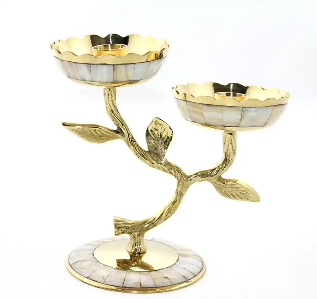 Pirinç Ve Sedef Karışımdan Üretilmiştir. Pirinç Sedefli 2'Li Şamdan 15*17 Cm