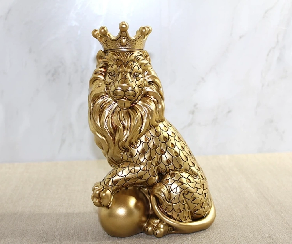 Polyester Dekoratif Taçlı Aslan Figürü Alk2576