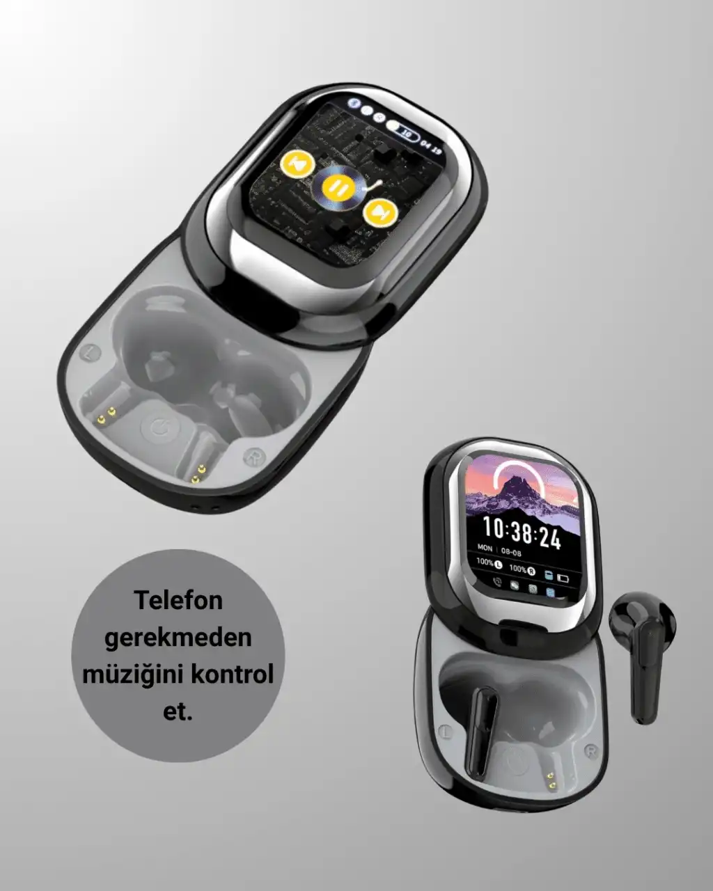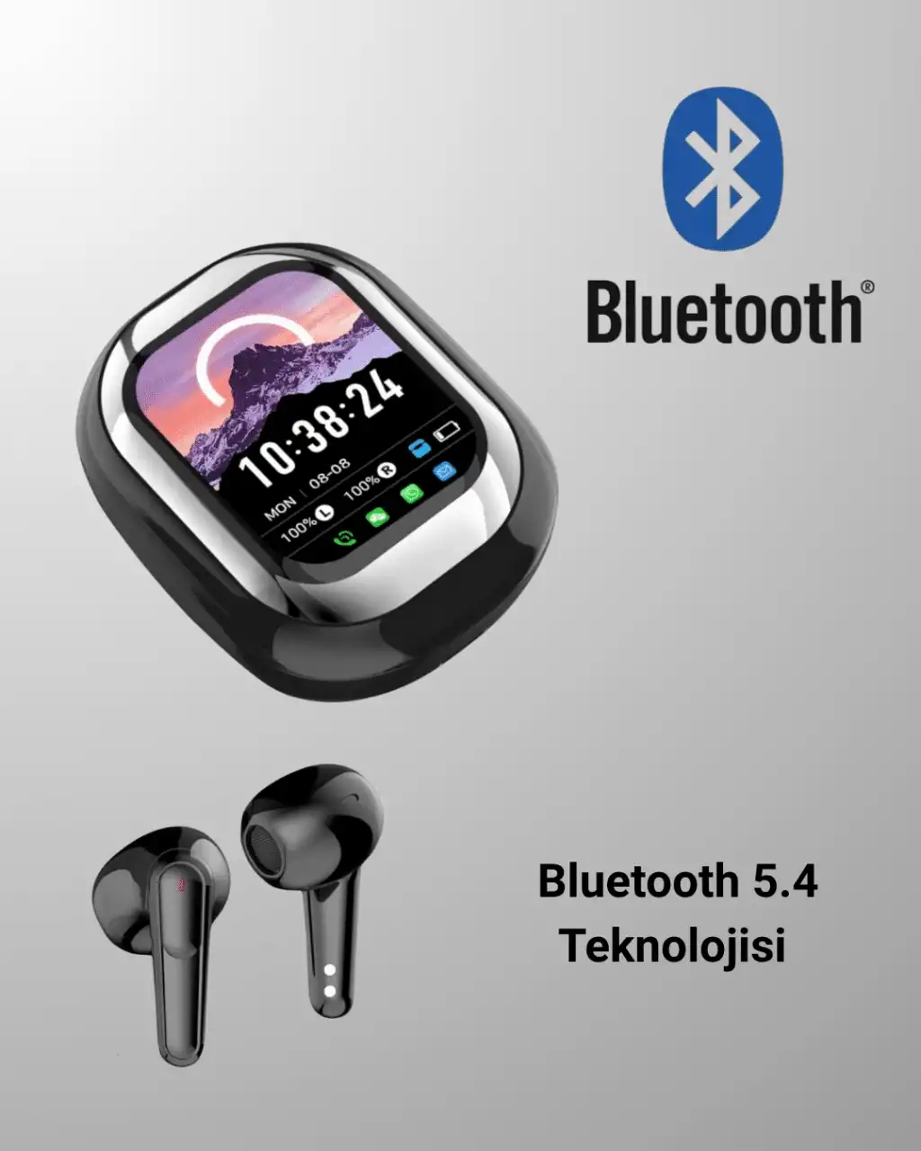 Yeni nesil Bluetooth 5.4 teknolojisiyle donatılmış bu akıllı ekranlı kablosuz kulaklık, üstün bağlantı hızı, düşük gecikme ve enerji verimliliği sunar. Günlük kullanımda hem müzik hem oyun için kararlı bir performans sağlar.Şarj kutusunda yer alan akıllı LED ekran, pil durumunu gösterir; saat, tarih ve isteğe bağlı ekran temalarıyla kişiselleştirilebilir. Hatta bazı modellerde kendi fotoğrafınızı yükleyerek kutuyu tamamen size özel hale getirebilirsiniz.Dokunmatik kontrol özelliği, müzik geçişi, çağrı yanıtlama ve mod değiştirme işlemlerini sadece parmak hareketinizle yapmanıza olanak tanır. Fiziksel tuşlara gerek kalmadan hızlı ve sezgisel bir kullanım deneyimi sunar.İki farklı kullanım modu sayesinde, müzik modunda zengin ses detayları, oyun modunda ise ultra düşük gecikme ile kesintisiz bir deneyim elde edersiniz. Dahili ENC teknolojisi, çevresel gürültüyü azaltarak telefon görüşmelerinde daha net ses kalitesi sağlar.Ergonomik ve hafif tasarımı, uzun süreli kullanımda bile kulakta konfor sağlar. Gelişmiş özellikleri, şık görünümü ve kişiselleştirilebilir detaylarıyla bu kulaklık, teknolojiyi stil ile buluşturan modern kullanıcılar için mükemmel bir seçimdir.