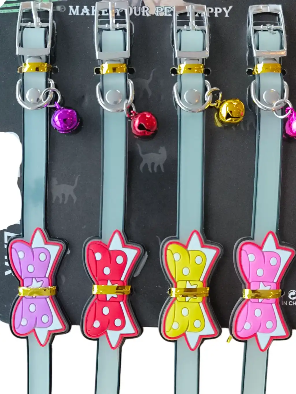 Ürün özellikleri: Silikon kedi tasması. Uzunluk takribi 29 Cm, En 1 Cm. Yumuşak hammadden üretilmştir kediye rahatsızlık vermez. Kartelada 12 vardır.Fiyat 1 Adet fiyatıdır.
