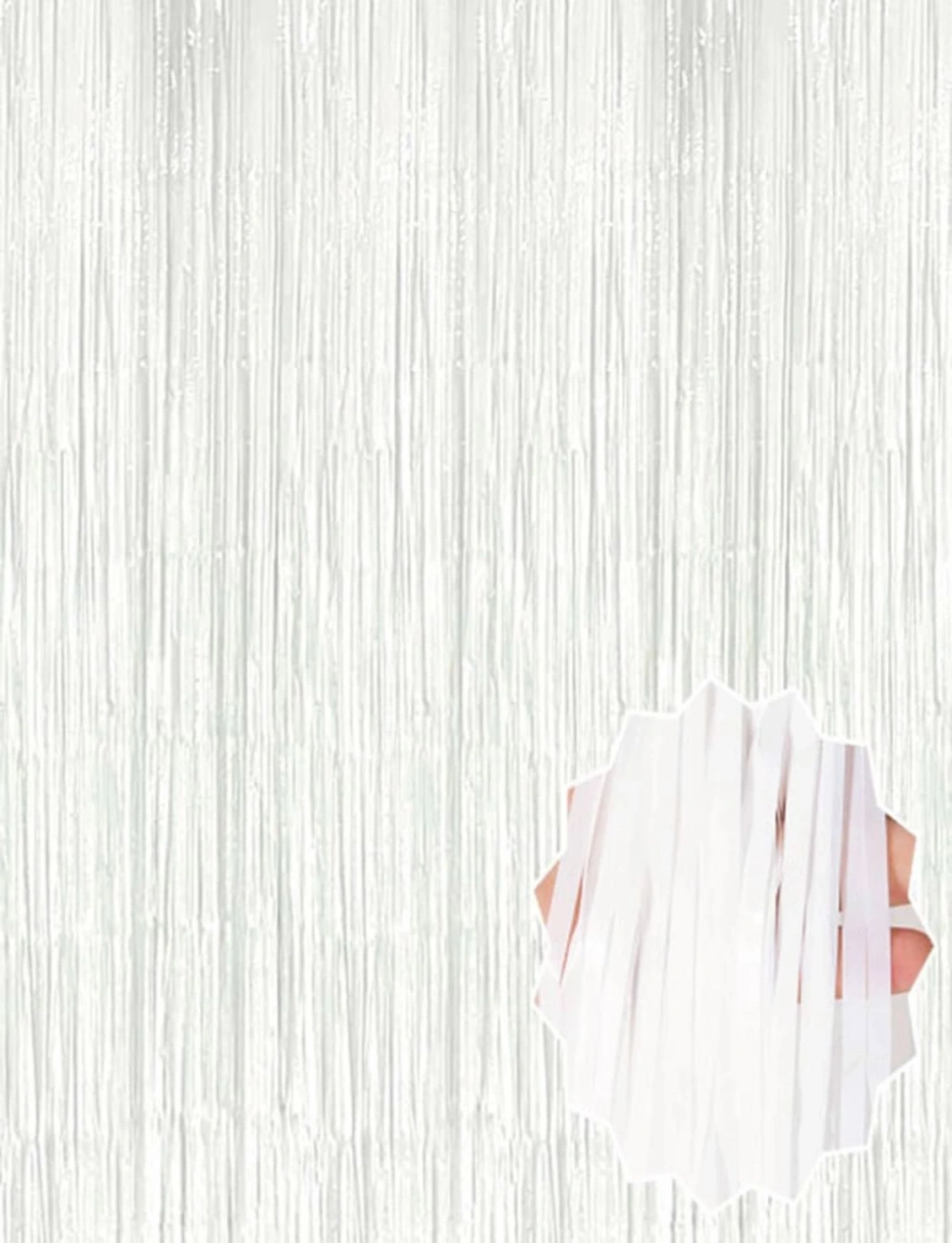 Parti organizasyonlarınızda sadece kapı değil duvar, perde gibi alanları da süsleyebileceğiniz Işıltılı Beyaz Püsküllü Perde.