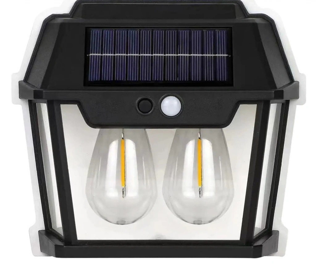 Rustik Ampul İkili Solar Duvar Aplik Güneş Enerjili Hareket Sensörlü
