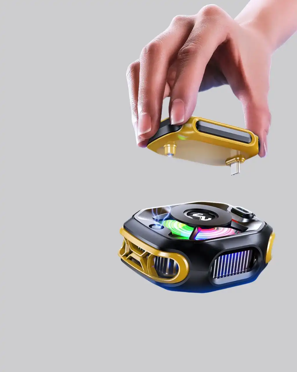 Bu telefon soğutucu, oyun severler ve mobil içerik üreticileri için özel olarak tasarlanmıştır. TEC yarı iletken çip, cihazınızın yüzeyindeki ısıyı anında dağıtır. 7 kanatlı fan, güçlü hava akışı yaratarak ısının kısa sürede uzaklaştırılmasını sağlar. Böylece cihazınız uzun süreli kullanımda dahi serin kalır.Ürün, 2000mAh dahili bataryası ile kablosuz kullanım imkanı sunar. Ayrıca Type-C girişi sayesinde adaptör bağlantısı ile çalışarak maksimum soğutma moduna geçer. Kullanıcılar, seyahat veya dış mekanlarda standart modu, uzun süreli oyunlarda ise AI modunu tercih edebilir.RGB ışık efektleri ve dijital sıcaklık ekranı, hem görsel bir şıklık hem de anlık sıcaklık takibi sağlar. 54x69.5x44mm boyutları ve 120 gramlık hafif yapısı ile pratik taşınabilirlik sunar. ABS + alüminyum alaşımlı gövdesi uzun ömürlü kullanım için dayanıklıdır.