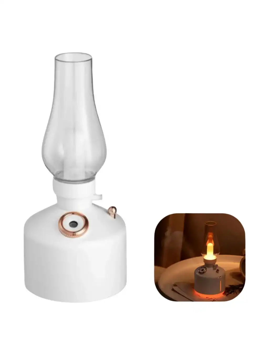 Gaz lambası stilinde tasarlanan bu aromaterapi nemlendirici, klasik ve modern çizgileri bir araya getirir. Nano mist teknolojisi sayesinde ortam havasını dengeli şekilde nemlendirir.280 ml haznesi uzun süreli kullanım sağlar. Aromaterapi yağları ile desteklenerek huzurlu bir atmosfer oluşturur. 1200 mAh batarya USB şarj özelliği sayesinde kablosuz kullanım sunar.LED ışık sistemi gece lambası işlevi görür. Hem dekoratif hem sağlıklı yaşamı destekleyen bir üründür.